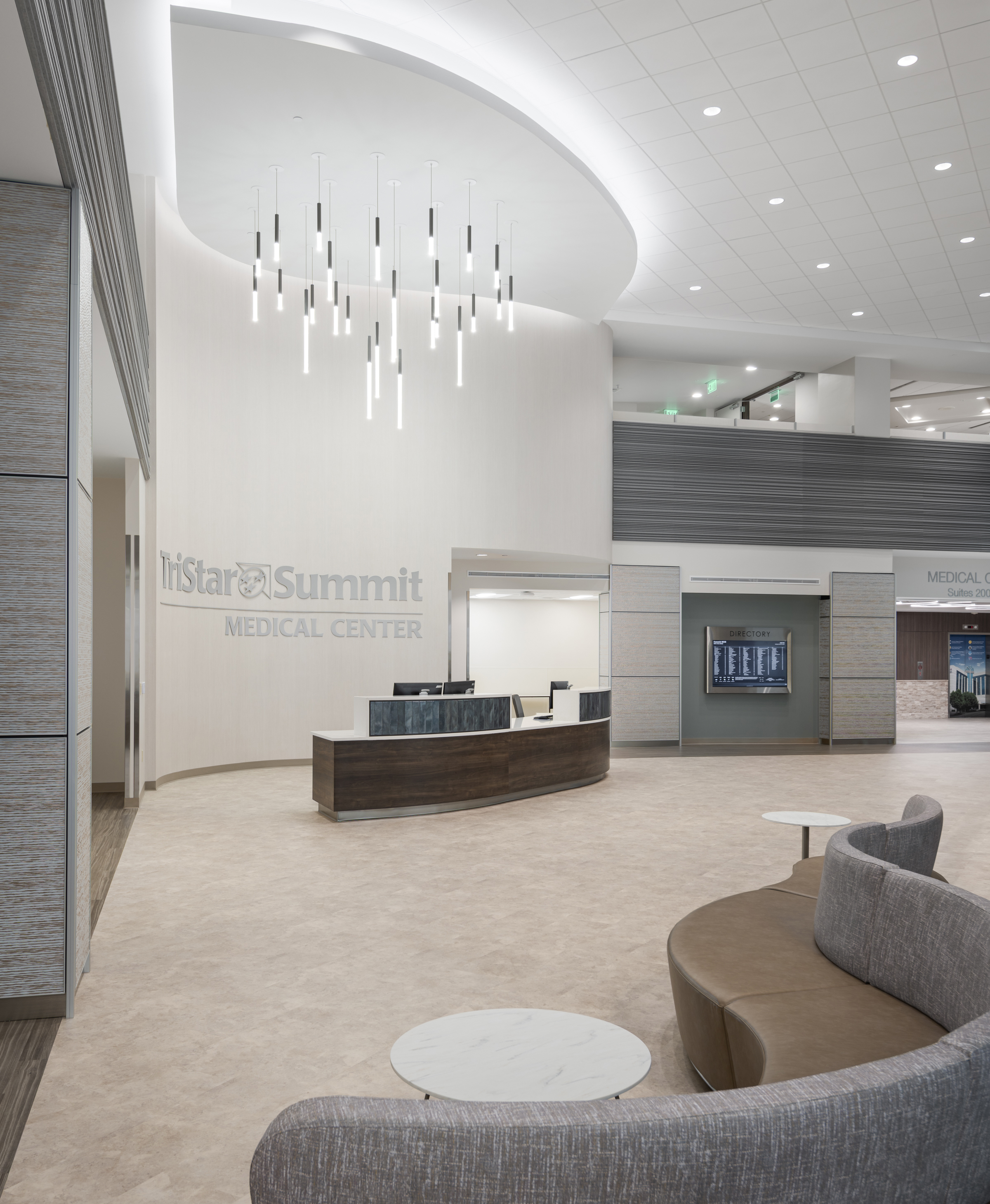 Sleek edges, updated proportions, and smooth finishes give the building a polished look while keeping it consistent with the campus’s existing buildings. A 788-vehicle parking deck was designed as a long, low mass, keeping the buildings as the center focus. The glass-clad stair tower on the building’s side entrance was intentionally placed for convenience and to help reduce traffic accidents.