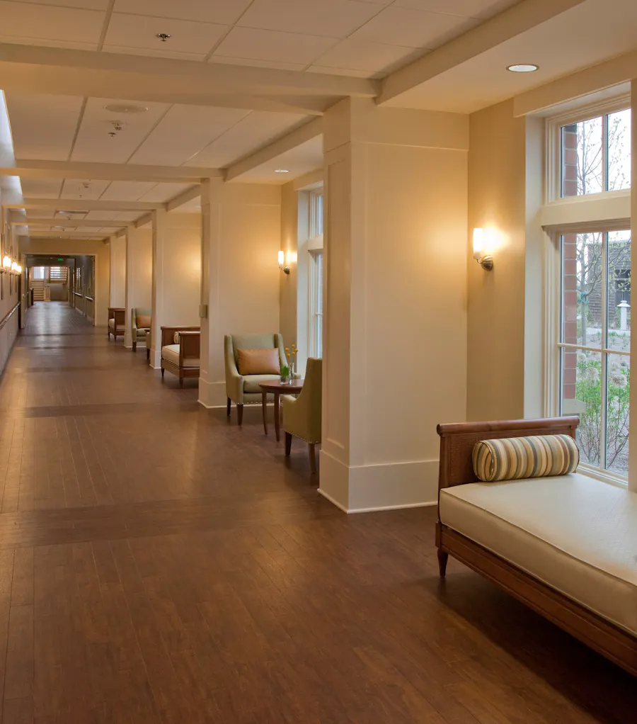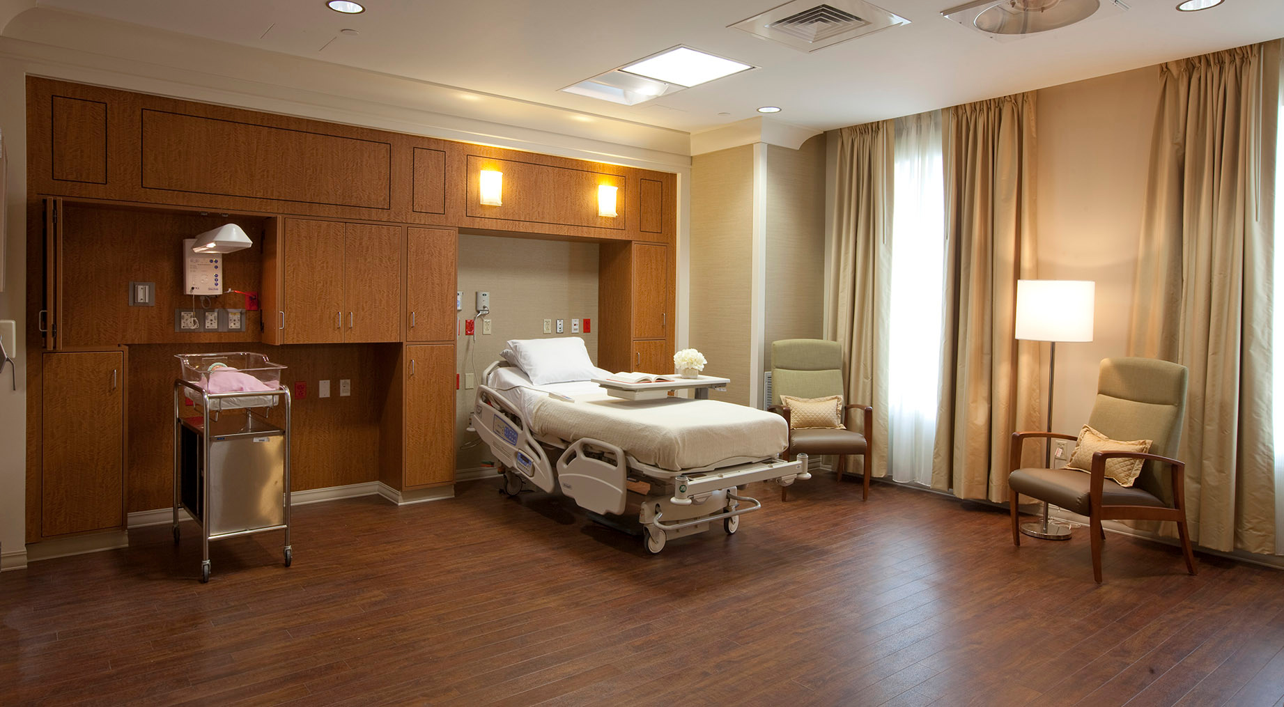 Following the patient-centered Planetree model, the hospital feels more than a place of wellness versus just a clinical facility. It features a health resource library and healing gardens that are shared with the neighboring nursing home.
