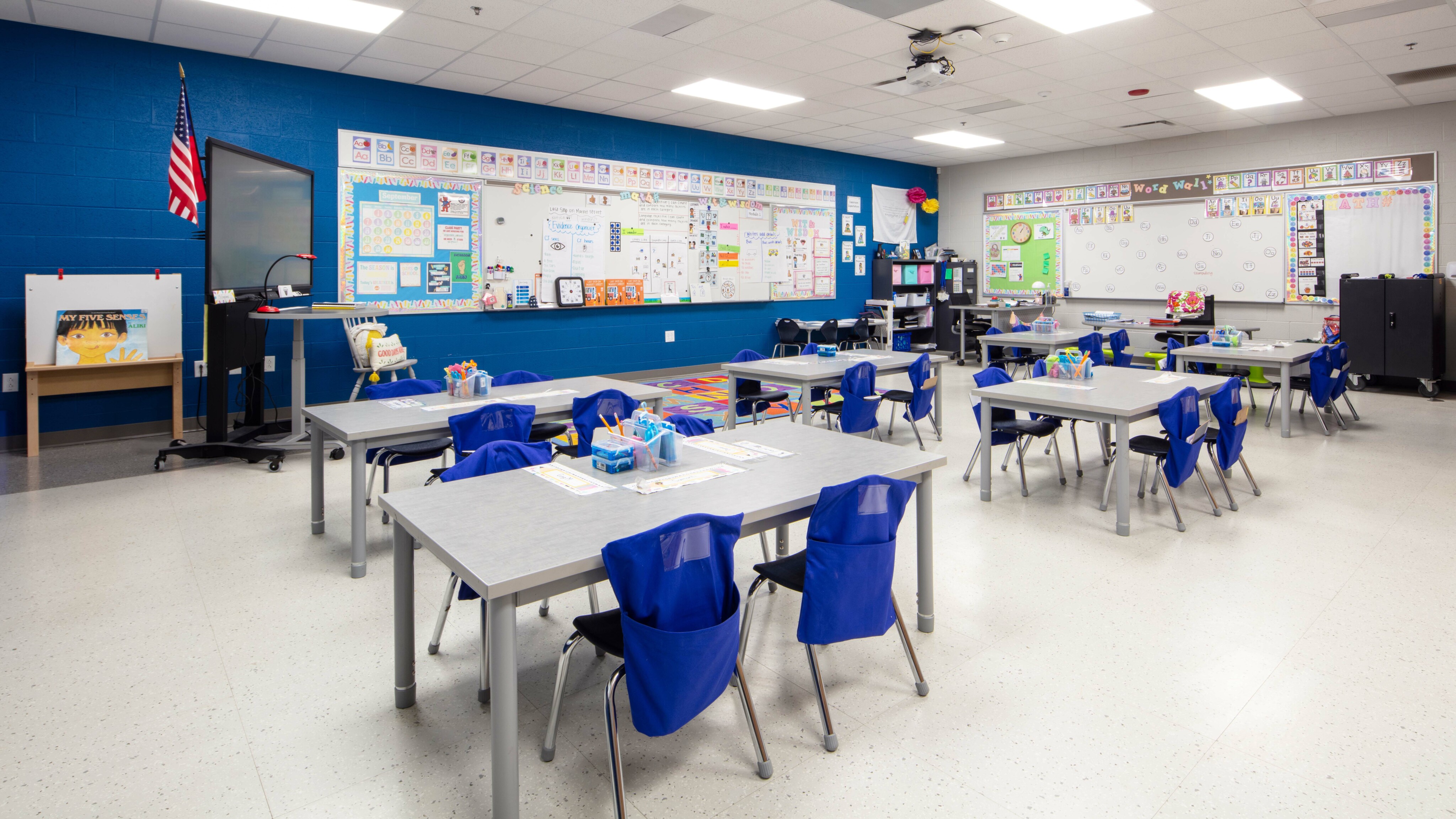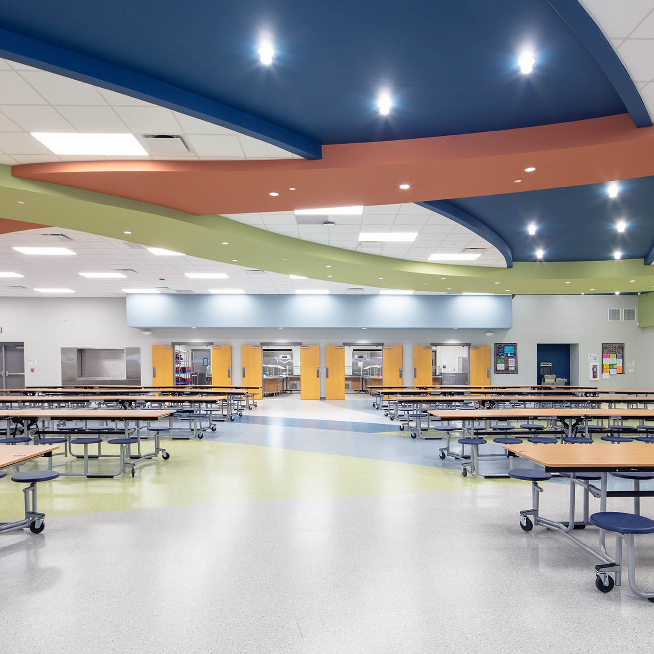 - Interior design palette includes bright, playful colors influenced by school demographic