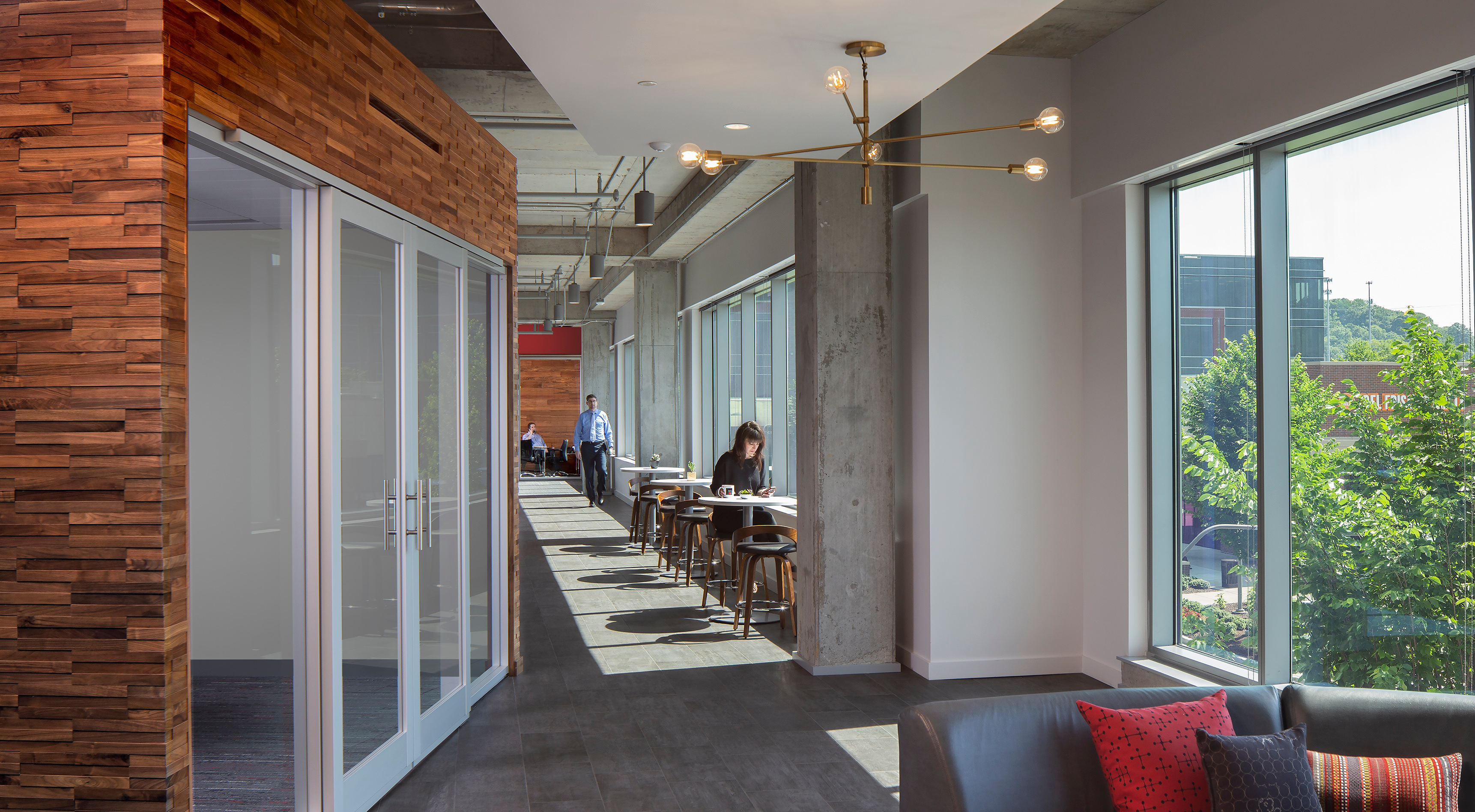 Concepts included both public and private workspaces, an increased number of group collaboration spaces, and lots of daylight. An expanded break area and café allowed team members to relax and socialize.