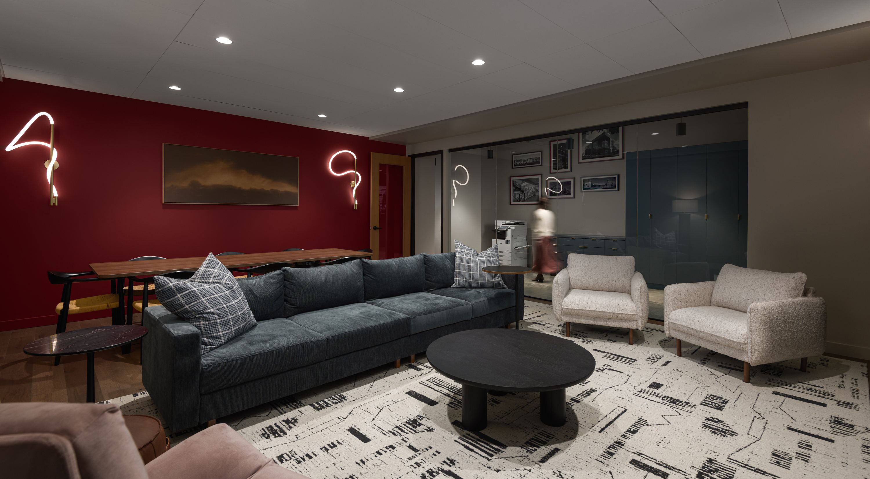 Other than at home, the office is often where people spend the most time. We wanted to acknowledge that and design a space that offers comfort, community, and improved efficiency to complete tasks in whatever way is best for employees.