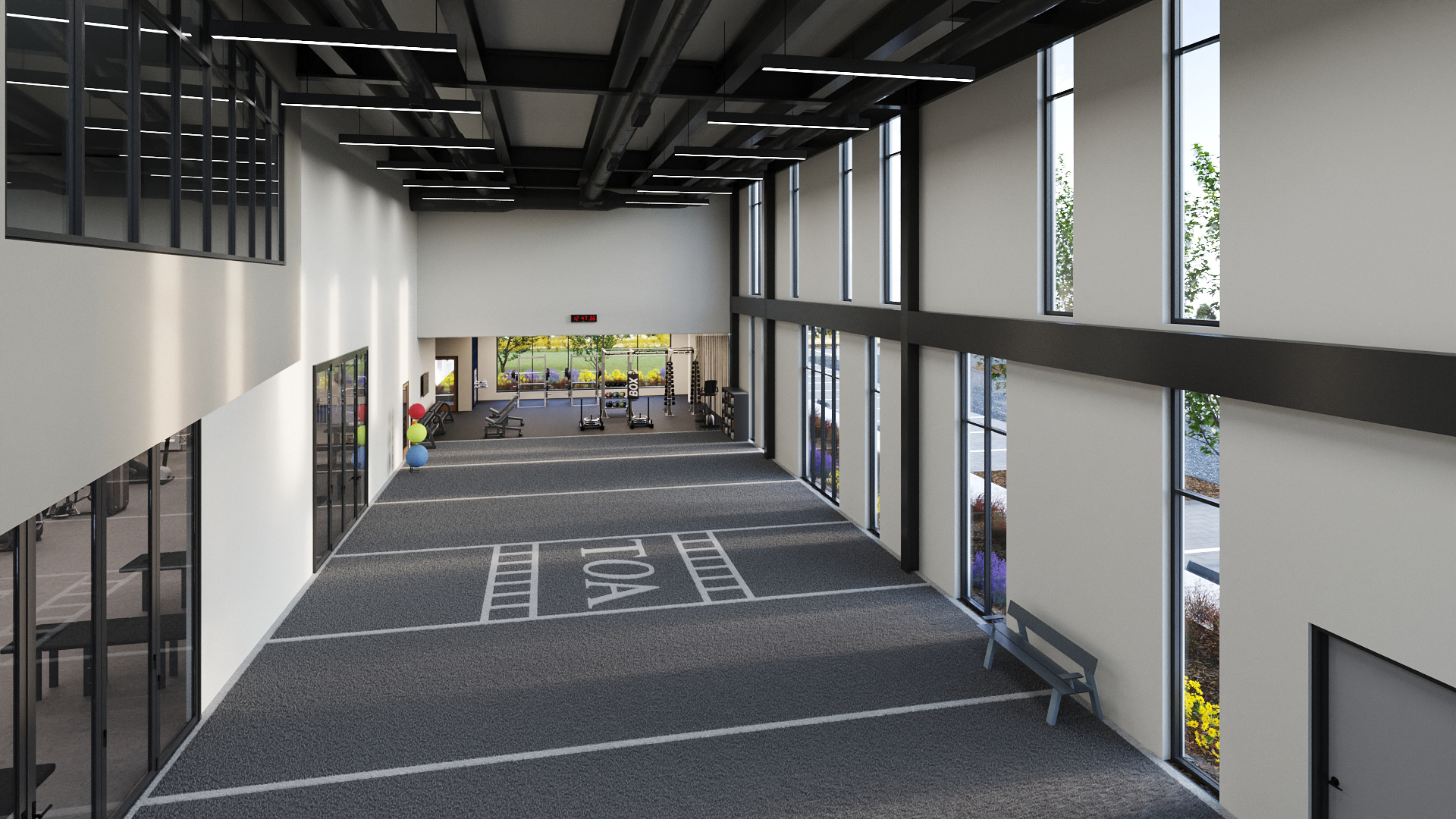 - Enclosed indoor sports field to be used for physical therapy and training